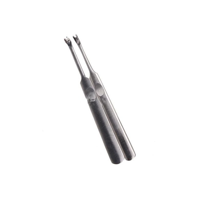 MATACANTOS DE 9,5 CM DE LARGO DE ACERO INOXIDABLE CON UN GRAN CORTE , DE DOS FORMAS DIFERENTES UNO EN FORMA DE "U" Y OTRO EN FORMA DE "V" IDEAL PARA CUEROS TIPO VAQUETILLA, TERNERA, POTRO SEMIENGRASADO Y TODO TIPO DE VACUNOS..... ALTA CALIDAD.