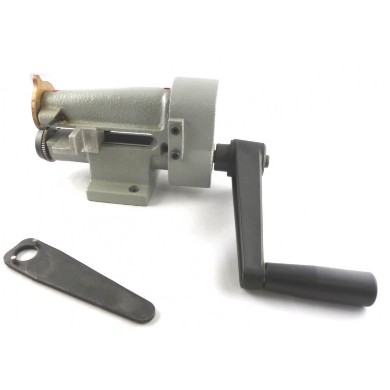Máquina manual para cortar y recortar cuero, goma etc.. con una longitud de brazo de 100 mm. Está equipada con una guía para ajustar el ancho de corte hasta 9,5 cm de ancho.