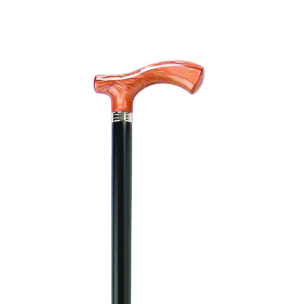 BASTON CLASICO,PALO MADERA TORNEADO/GRABADO, PUÑO METACRILATO JASPEADO