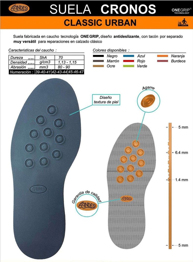 Especificaciones para ANDES PISO CRONOS CAUCHO