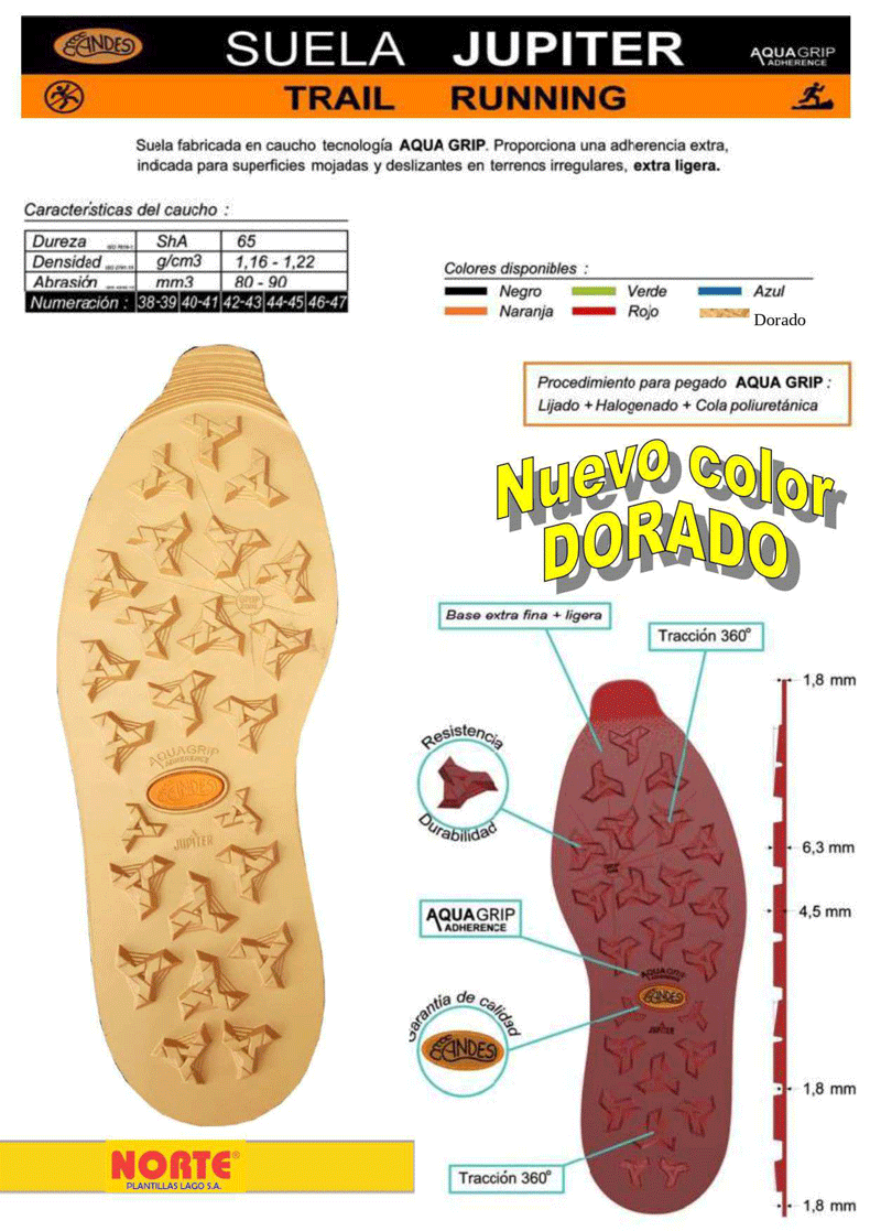Especificaciones para ANDES PISO JUPITER AQUAGRIP CAUCHO