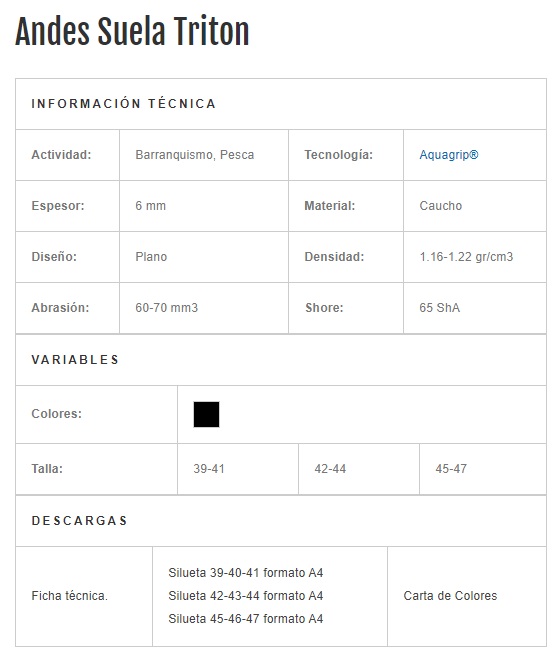 Especificaciones para ANDES PISO TRITON CAUCHO