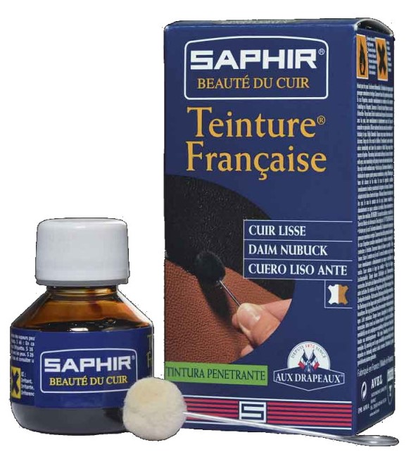 En caso de cueros deteriorados, utilizar el DECAPANTE SAPHIR ® (Ref. 0844) para retirar suciedades, grasas, ceras y capas de tinte anteriores o de origen. Posteriormente, aplicar la tintura con un pincel dejándola secar 1 hora. Si se desea dar una segunda capa (no suele ser necesario), la primera capa debe estar totalmente seca, y haber cepillado la piel de restos de tinte.